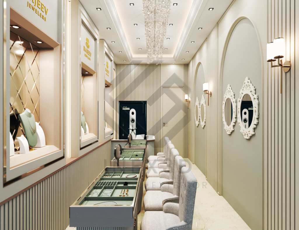 This jewelry showroom interior has been designed with a perfect balance of elegance, sophistication, and functionality. The concept emphasizes a luxurious yet welcoming atmosphere, ensuring that customers enjoy a premium shopping experience.