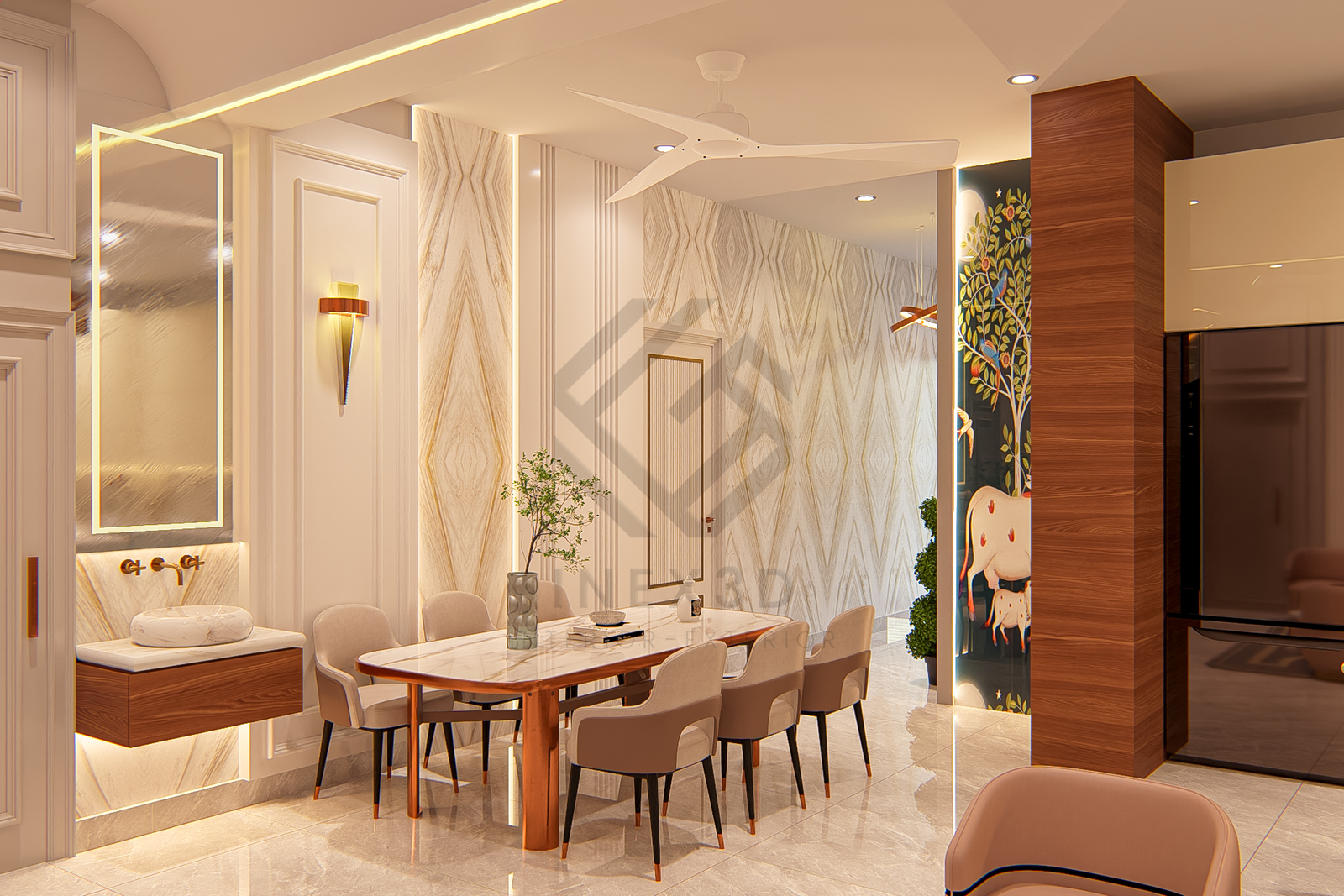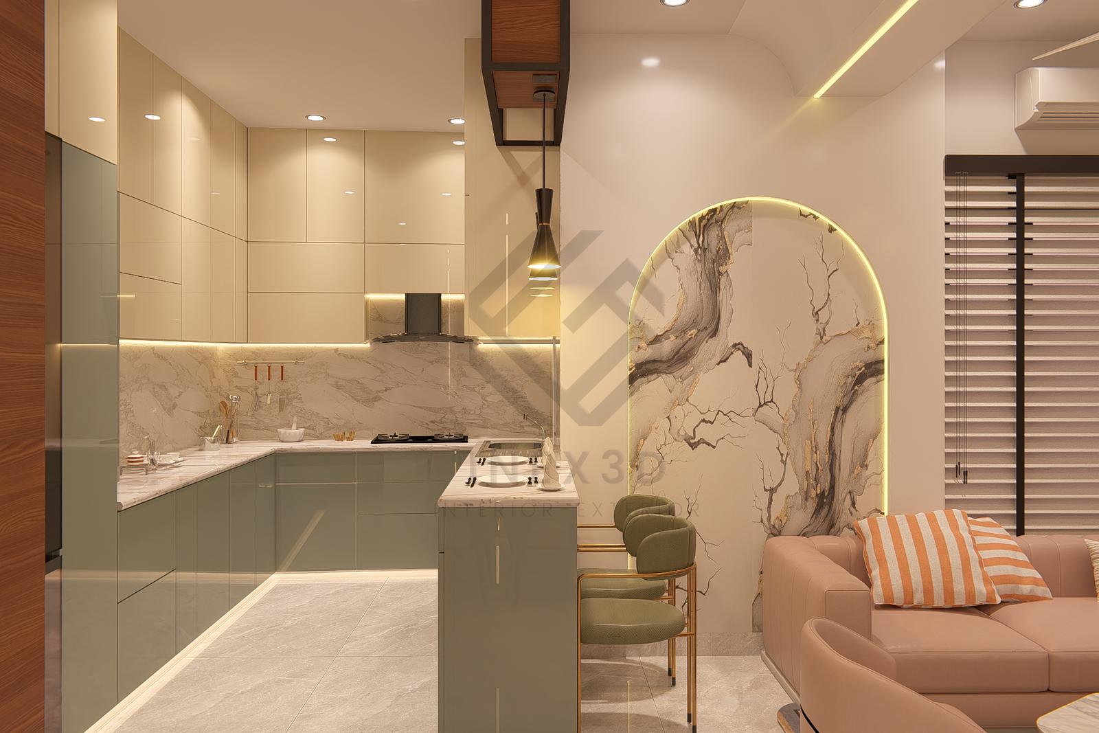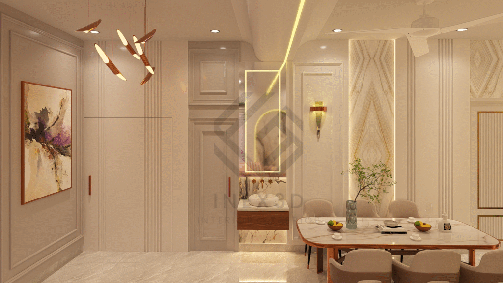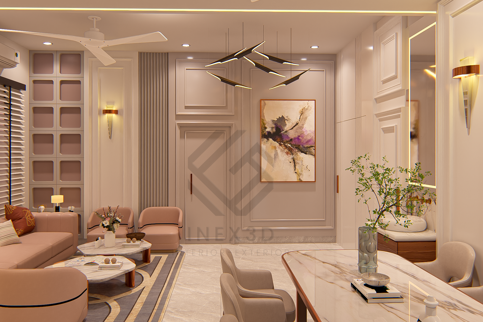 The interiors showcase a seamless blend of modern luxury and livable comfort. Arched elements, warm indirect lighting, and carefully curated materials (marble, wood, fabric, and metallic accents) create harmony throughout the project. The design emphasizes sophistication while ensuring the spaces remain functional and inviting for daily living.